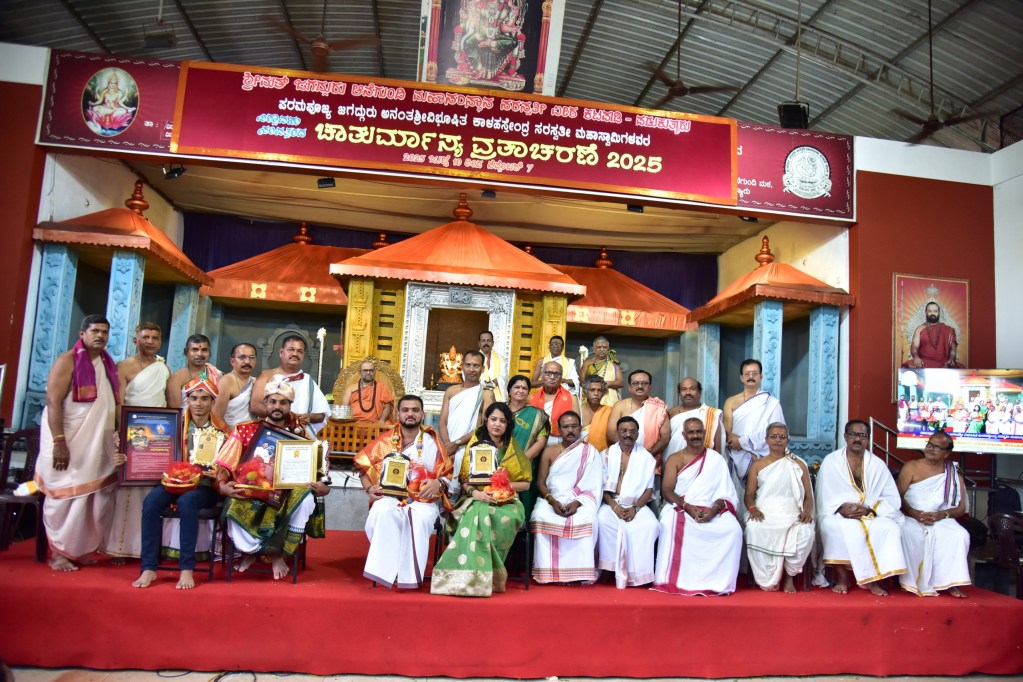 ೨೧ ವರ್ಷದಲ್ಲಿ ಮಠ ಎಷ್ಟು ಬೆಳೆಯಬೇಕಿತ್ತೋ ಅಷ್ಟು ಎತ್ತರಕ್ಕೆ ಬೆಳೆದಿದೆ. ಶಾಸ್ತ್ರ ಸಹಿತ ಶಿಲ್ಪ ಕಲಿಸುವ ಗುರಿ ಇರಿಸಿಕೊಂಡಿದ್ದು ಪಂಚಶಿಲ್ಪದಲ್ಲಿ ಎತ್ತರದ ಸಾಧನೆ ಮಾಡಬೇಕೆಂಬ ಉದ್ದೇಶದಲ್ಲಿ ತರಬೇತಿ ಕೇಂದ್ರ ಆರಂಭಿಸುವ ಗುರಿ ಇದೆ ಎಂದರು. ಆನೆಗುಂದಿ ಪ್ರತಿಷ್ಠಾನದ ಅಧ್ಯಕ್ಷ ವಿ. ಶ್ರೀಧರ ಆಚಾರ್ಯ ವಡೇರಹೋಬಳಿ ಇವರು ಅಧ್ಯಕ್ಷತೆ ವಹಿಸಿ ಮಾತನಾಡುತ್ತಾ ಮಠದಲ್ಲಿ ಪಂಚಶಿಲ್ಪ ಶಾಲೆಯನ್ನು ತೆರೆಯುವ ಪ್ರಯತ್ನ ನಡೆಯುತ್ತಿದೆ. ಚಾತುರ್ಮಾಸ್ಯ ಸಂದರ್ಭದಲ್ಲಿ ದ್ವಾದಶ ರಾಶಿ ಪೂಜೆ, ಮಾತೃವಂದನಾ ಕಾರ್ಯಕ್ರಮ ನಡೆಯಲಿದೆ. ಈ ಸಂದರ್ಭ ಎಲ್ಲರೂ ಭಾಗವಹಿಸಬೇಕು. ಮಠದಲ್ಲಿ ಒಂದಷ್ಟು ಅಭಿವೃದ್ಧಿ ಕೆಲಸಗಳು ನಡೆಯುತ್ತಿದ್ದು ಈ ಅಭಿವೃದ್ಧಿ ಕೆಲಸದಲ್ಲಿ ಎಲ್ಲರೂ ಕೈಜೋಡಿಸುವಂತೆ ಮನವಿ ಮಾಡಿದರು.ಯುವ ಸಾಧಕರಿಗೆ ಗೌರವಾರ್ಪಣೆ ಭಾಗವಾಗಿ ಗೋಲ್ಡನ್ ಬುಕ್ ಆಫ್ ರೆಕಾರ್ಡ್ಸ್ ವಿಶ್ವ ದಾಖಲೆಯ ವಿದ್ವಾನ್ ಶ್ರೀ ಎಂ.ಜಿ ಯಶವಂತ ಶರ್ಮ ಮೂಡಬಿದರೆ ಹಾಗೂ ಭಾರತೀಯ ಭೂಸೇನೆಗೆ ಸೇರ್ಪಡೆಗೊಂಡ ಶ್ರೀ ಸಾಗರ್ ಆಚಾರ್ಯ ಬೈಲೂರು ಕಾರ್ಕಳ ಅವರನ್ನು ಅಭಿನಂದಿಸಲಾಯಿತು. ಹಿನ್ನೆಲೆ ಕಲಾವಿದರಾದ ಶ್ರೀಮತಿ ವರ್ಷಾ ಆದರ್ಶ ಆಚಾರ್ಯ ಮೂಡುಬಿದಿರೆ(ವೇಣುವಾದಕಿ ), ಶ್ರೀ ಪ್ರಜ್ವಲ್ ಆಚಾರ್ಯ ಉಡುಪಿ (ತಬಲಾ ವಾದಕ)ಇವರನ್ನು ಇದೇ ವೇಳೆ ಅಭಿನಂದಿಸಲಾಯಿತು. ವಿದ್ವಾನ್ ಮೌನೇಶ ಶರ್ಮಾ, ವಿದ್ವಾನ್ ಪಂಚಮ ಶರ್ಮಾ ಅಭಿನಂದನಾ ಪತ್ರ ವಾಚಿಸಿದರು. ವಿಶ್ವನಾಥ ಆಚಾರ್ಯ ಆಡಳಿತ ನಿರ್ದೇಶಕರು ಅಕ್ಷಯಾ ಜ್ಯುವೆಲ್ಲರ್ಸ್ ದೋಹಾ ಕತಾರ್ ಅವರು ವಿಶೇಷ ಆಹ್ವಾನಿತರಾಗಿ ಭಾಗವಹಿಸಿದ್ದರು. ಆಸ್ಥಾನ ವಿದ್ವಾಂಸರಾದ ಅಂತರಾಷ್ಟ್ರೀಯ ಜೋತಿಷ್ಯ ವಿದ್ವಾನ್ ಉಮೇಶ ಆಚಾರ್ಯ ಪಡೀಲು, ಬ್ರಹ್ಮಶ್ರೀ ಶ್ರೀಧರ ಶರ್ಮಾ ಕಟಪಾಡಿ, ಬ್ರಹ್ಮಶ್ರೀ ಲಕ್ಷ್ಮೀಕಾಂತ ಶರ್ಮಾ ಸಾಲಿಗ್ರಾಮ, ಚಾತುರ್ಮಾಸ್ಯ ವ್ರತ ನಿರ್ವಹಣಾ ಸಮಿತಿ ಗೌರವಾಧ್ಯಕ್ಷಪಿ.ವಿ ಗಂಗಾಧರ ಆಚಾರ್ಯ ಉಡುಪಿ, ಆನೆಗುಂದಿ ಶ್ರೀ ಸರಸ್ವತೀ ಎಜ್ಯುಕೇಶನಲ್ ಟ್ರಸ್ಟ್ (ರಿ) (ಅಸೆಟ್) ಅಧ್ಯಕ್ಷ ಬಿ.ಸೂರ್ಯಕುಮಾರ್ ಆಚಾರ್ಯ ಹಳೆಯಂಗಡಿ, ಆನೆಗುಂದಿ ಗುರುಸೇವಾ ಪರಿಷತ್ ಕೇಂದ್ರ ಸಮಿತಿ ಪಡುಕುತ್ಯಾರು ಇದರ ಅಧ್ಯಕ್ಷ ಶ್ರೀ ಗಣೇಶ್ ಆಚಾರ್ಯ ಕೆಮ್ಮಣ್ಣು, ಆನೆಗುಂದಿ ಶ್ರೀ ಸರಸ್ವತೀ ಗೋವು ಮತ್ತು ಪರ್ಯಾವರಣ್ ಸಂರಕ್ಷಣಾ ಟ್ರಸ್ಟ್ (ರಿ) ಅಧ್ಯಕ್ಷ ಸುಂದರ ಆಚಾರ್ಯ ಬೆಳುವಾಯಿ, ಶ್ರೀ ಸರಸ್ವತೀ ಮಾತೃಮಂಡಳಿ ಅಧ್ಯಕ್ಷೆ ಶ್ರೀಮತಿ ಸಂಧ್ಯಾ ಲಕ್ಷ್ಮಣ ಆಚಾರ್ಯ, ಶ್ರೀ ಸರಸ್ವತೀ ಪೂರ್ವ ಛಾತ್ರ ಸಂಘದ ಅಧ್ಯಕ್ಷ ವಿದ್ವಾನ್ ಬ್ರಹ್ಮಶ್ರೀ ಕೇಶವ ಶರ್ಮಾ ಇರುವೈಲು, ಕಾಳಿಕಾಂಬಾ ದೇವಾಲಯಗಳ ಆಡಳಿತ ಮೊಕ್ತೇಸರರಾದ ಮುರಹರಿ ಆಚಾರ್ಯ ಕಟಪಾಡಿ, ಶಿಲ್ಪಿ ರಾಮಚಂದ್ರ ಆಚಾರ್ಯ ಕಾರ್ಕಳ, ಬಾಲಕೃಷ್ಣ ಆಚಾರ್ಯ ಮೂಡಬಿದ್ರೆ , ಗಜಾನನ ಎನ್. ಆಚಾರ್ಯ ಭಟ್ಕಳ, ವೆಂಕಟ್ರಮಣ ಆಚಾರ್ಯ ಉಳುವಾರು ಬಂಗ್ರಮಂಜೇಶ್ವರ, ಜನಾರ್ದನ ಆಚಾರ್ಯ ಆರಿಕ್ಕಾಡಿ ಕುಂಬಳೆ, ನ್ಯಾಯವಾದಿ ಕೆ. ಪ್ರಭಾಕರ ಆಚಾರ್ಯ ಕೋಟೆಕಾರು ಮಧೂರು, ಚಂದ್ರಯ್ಯ ಆಚಾರ್ಯ ಉಪ್ರಳ್ಳಿ, ಬಿ.ಯೋಗೀಶ್ ಆಚಾರ್ಯ ಬೆಂಗಳೂರು, ನಾಲ್ಕೂರು ಪಂಜುರ್ಲಿ ದೈವಸ್ಥಾನ ಪಡುಪಣಂಬೂರು ಇದರ ಅಧ್ಯಕ್ಷ ಜಗದೀಶ್ ಆಚಾರ್ಯ, ಆನೆಗುಂದಿ ಪ್ರತಿಷ್ಠಾದ ಉಪಾಧ್ಯಕ್ಷ ಕೆ.ನಾಗರಾಜ ಆಚಾರ್ಯ ಕಾಡಬೆಟ್ಟು ಉಡುಪಿ, ಲೋಲಾಕ್ಷ ಶರ್ಮಾ ಪಡುಕುತ್ಯಾರು ಇವರು ಉಪಸ್ಥಿತರಿದ್ದರು. ಶ್ರೀ ನಾಗಧರ್ಮೇಂದ್ರ ಸರಸ್ವತೀ ಸಂಸ್ಕೃ
