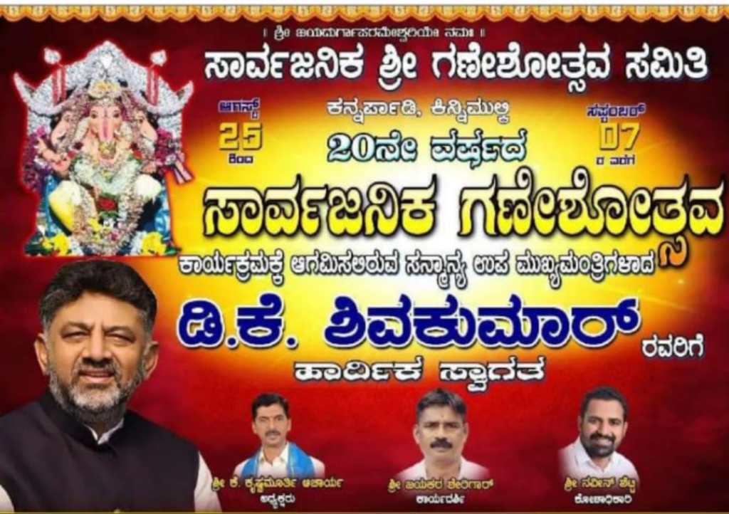 ಅ. 30 ಕಿನ್ನಿಮೂಲ್ಕಿ ಸಾರ್ವಜನಿಕ ಗಣೇಶೋತ್ಸವ ಡಿಸಿಎಂ ಡಿ.ಕೆ. ಶಿವಕುಮಾರ್ ಬಾಗಿ
