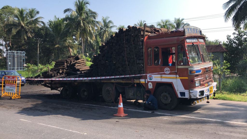 ಕಾಪು: ತೀರ್ಥಹಳ್ಳಿಯಿಂದ ಮಂಗಳೂರು ಕಡೆ ಮರದ ದಿಮ್ಮಿ ಸಾಗಿಸುತ್ತಿದ್ದ ಲಾರಿಯೊಂದರ ಟೈರ್ ಸ್ಪೋಟಗೊಂಡು ಮರದ ದಿಮ್ಮಿ ಸಮೇತ ಲಾರಿ ಹೊತ್ತಿ ಉರಿದ ಘಟನೆ ಗುರುವಾರ ತಡಾ ರಾತ್ರಿ ಕಾಪು ದಂಡ ತೀರ್ಥ ಮಠದ ಮುಂಭಾಗದಲ್ಲಿ ರಾಷ್ಟ್ರೀಯ ಹೆದ್ದಾರಿ 66 ರ ಬಳಿನಡೆದಿದೆ. ಘಟನೆಯಿಂದಾಗಿ ಲಾರಿಯ ಹಿಂಭಾಗ ಟಯರ್ ಸಂಪೂರ್ಣ ಸುಟ್ಟು ಕರಕಲಾಗಿದ್ದು ಮರದ ದಿಮ್ಮಿಗಳು ಕೂಡ ಬೆಂಕಿಗೆ ಆಹುತಿಯಾಗಿದೆ. ಕೂಡಲೇ ಕಾರ್ಯಪ್ರವೃತರಾದ ಕಾಪು ಪೊಲೀಸರು ಅಗ್ನಿಶಾಮಕ ದಳಕ್ಕೆ ಸಂಪರ್ಕಿಸುವ ಮುಖೇನ ಬಾರಿ ಅನಾಹುತ ತಪ್ಪಿಸಿದ್ದಾರೆ