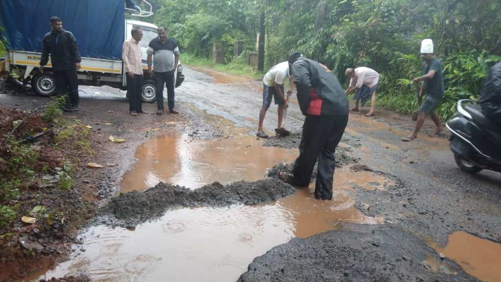 ಪಡುಅಲೆವೂರು: ಶ್ರಮದಾನದ ಮೂಲಕ ರಸ್ತೆಯ ಹೊಂಡ ಮುಚ್ಚಿದ ಗ್ರಾಮಸ್ಥರು