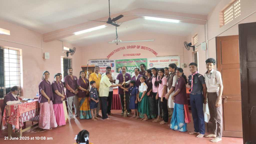 ವಿಶ್ವ ಯೋಗ ದಿನಾಚರಣೆಯನ್ನು ಕಾಪು ದಂಡತೀರ್ಥ ವಿದ್ಯಾಸಂಸ್ಥೆಯಲ್ಲಿ ಆಚರಿಸಲಾಯಿತು. ಯೋಗ ಗುರುವಾಗಿ ಭಾಗವಹಿಸಿದ ಪಡುಬಿದ್ರಿ ಜೇಸಿಯ ಪೂರ್ವಾಧ್ಯಕ್ಷ ಮಕರಂದ ಇವರು ಯೋಗದ ಮಹತ್ವವನ್ನು ವಿದ್ಯಾರ್ಥಿಗಳಿಗೆ ನೀಡಿ ಪ್ರಾತ್ಯಕ್ಷಿಕೆಯನ್ನು ನಡೆಸಿಕೊಟ್ಟರು. ವಿದ್ಯಾರ್ಥಿಯ ದೈಹಿಕ ಹಾಗೂ ಮಾನಸಿಕ ಬೆಳಣಿಗೆಗೆ ಯೋಗ ಸಹಕಾರಿಯಾಗಿದ್ದು, ಪ್ರತಿನಿತ್ಯ ಉಲ್ಲಸಿತರಾಗಿ ಪಾಠ – ಪಾಠೇತರ ಚಟುವಟಿಕೆಗಳಲ್ಲಿ ತೊಡಗಿಕೊಳ್ಳಲು ಸಹಕಾರಿಯಾಗುತ್ತದೆ ಎಂಬ ಸಂದೇಶವನ್ನು ನೀಡಿದರು. ಸಮಾರಂಭದ ಅಧ್ಯಕ್ಷತೆ ಯನ್ನು ಆಡಳಿತಾಧಿಕಾರಿ ಆಲ್ಬನ್ ರೊಡ್ರಿಗಸ್ ವಹಿಸಿ ಜಗತ್ತಿಗೆ ಯೋಗವನ್ನು ಪರಿಚಯಿಸಿದ ಭಾರತದ ಬಗ್ಗೆ ಹೆಮ್ಮೆಯನ್ನು ವ್ಯಕ್ತ ಪಡಿಸಿ, ಆರೋಗ್ಯದ ರಕ್ಷಣೆಗೆ ಯೋಗ ಸಹಕಾರಿ ಎಂಬ ಸಂದೇಶ ನೀಡಿದರು. ಪ್ರಾಂಶುಪಾಲ ನೀಲಾನಂದ ನಾಯ್ಕ್, ಶಿಕ್ಷಣ ಸಂಯೋಜಕ ಶಿವಣ್ಣ ಬಾಯಾರ್, ಪ್ರಾಥಮಿಕ ವಿಭಾಗದ ಮುಖ್ಯೋಪಾಧ್ಯಾಯ ಗೇಬ್ರಿಯಲ್ ಮಸ್ಕರೇನ್ಹಸ್, ಸ್ಕೌಟ್, ಗೈಡ್, ಕಬ್, ಬುಲ್ ಬುಲ್, ಎನ್. ಸಿ. ಸಿ., ಸೇವಾದಳ, ಎನ್. ಎಸ್. ಎಸ್. ವಿಭಾಗದ ಶಿಕ್ಷಕ ಮುಖ್ಯಸ್ಥರುಗಳು ಹಾಗೂ ವಿದ್ಯಾರ್ಥಿಗಳು ಉಪಸ್ಥಿತರಿದ್ದರು. ಉಪನ್ಯಾಸಕಿ ತೇಜಶ್ರೀ ಸ್ವಾಗತಿಸಿದರು. ಶಿಕ್ಷಕಿ ಹೇಮಲತಾ ಧನ್ಯವಾದ ನೀಡಿದ ಈ ಕಾರ್ಯಕ್ರಮವನ್ನು ಶಿಕ್ಷಕ ಉದಯ ಕುಮಾರ್ ನಿರೂಪಿಸಿದರು.