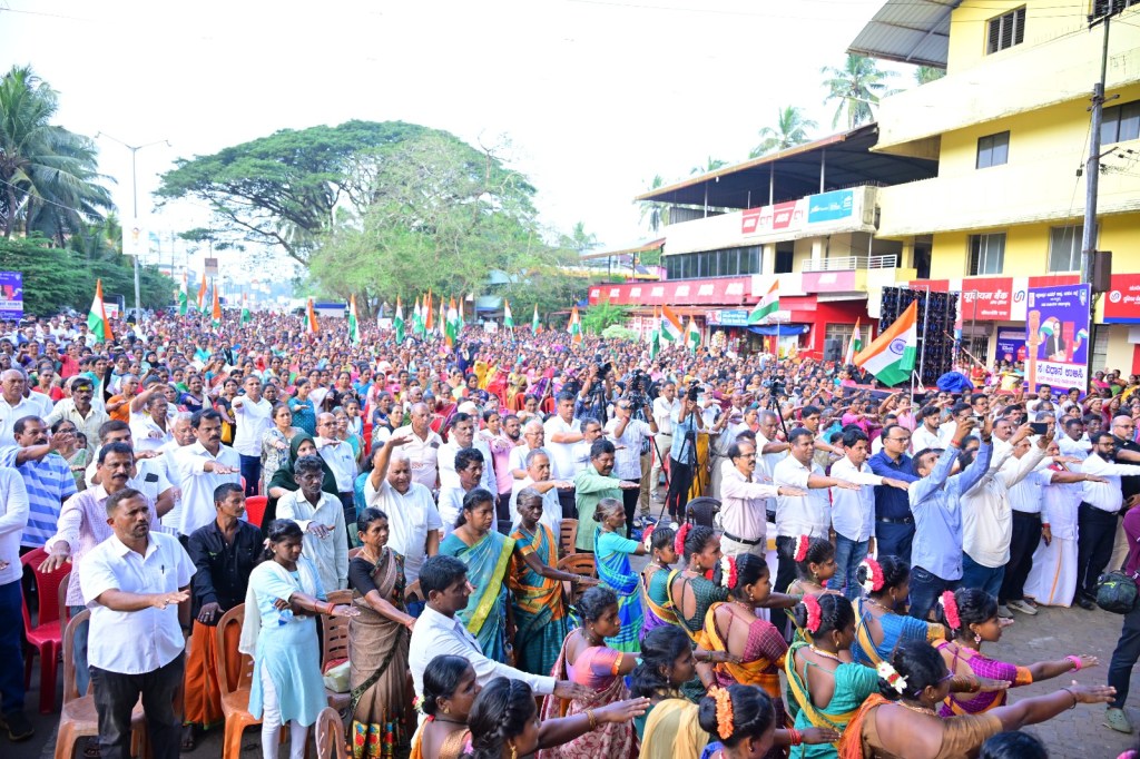ಕಾಪು ಮಾಜಿ ಸಚಿವ ಸೊರಕೆ ನೇತೃತ್ವದಲ್ಲಿ ಮತ್ತು ರಕ್ಷಣಾಪುರ ಜವನೆರ್ ವಿವಿಧ ಸಂಘಟನೆಗಳ ಸಹಭಾಗಿತ್ವದಲ್ಲಿ ಸಂವಿಧಾನ ಉಳಿಸಿ ಬೃಹತ್ ಜಾಥ ಮತ್ತು ಸಾರ್ವಜನಿಕ ಸಭೆನಡೆಯಿತು ಈ ಸಂದರ್ಭದಲ್ಲಿ ವಾಗ್ಮಿ ನಿಕೇತ್ ರಾಜ್ ಮೌರ್ಯ ಮಾತನಾಡಿ 75 ವರ್ಷ ದಿಂದ ಈಚೆಗೆ ಬಾಬಾ ಸಾಹೇಬ್ ಅಂಬೇಡ್ಕರ್ ಬರೆದಿರುವ ಮನುಷ್ಯ ಸಂವಿಧಾನವನ್ನು ಭಾರತ ದೇಶ ನೋಡುತಿದ್ದೆ ಈ ಚಿಕ್ಕ ಕಾ ಲಾವದಿಯಲ್ಲಿ ಈ ಸಂವಿಧಾನ ಮಾಡಿರುವ ಕ್ರಾಂತಿಯನ್ನು ನೋಡಿ ಜೀರ್ಣಸಿ ಕೊಳ್ಳಲಾಗದ ಜನ ಸಂವಿಧಾನ ವನ್ನು ಟೀಕೆ ಮಾಡುತಿದ್ದಾರೆ ದೇಶ ಭಕ್ತಿಯ ಮುಖವಾಡವನ್ನು ಹಾಕಿಕೊಂಡು ಈ ದೇಶದ ಜನರ ದಿಕ್ಕು ತಪ್ಪಿಸುತ್ತಾರೆ ಯಾವ ಸಂವಿಧಾನದಿಂದ ಅಧಿಕಾರ ಪಡೆದು ಪಾರ್ಲಿಮೆಂಟ್ ಗೆ ಹೋದರು ಅವರೇ ಸಂವಿಧಾನ ಬದಲಾವಣೆ ಮಾಡುತ್ತೇವೆ ಎಂದು ಭಾಷಣ ಮಾಡುತ್ತಾರೆ ಹೇಳಿದರು.ಜಯಪ್ರಕಾಶ್ ಹೆಗ್ಡೆ ಮಾತನಾಡಿ ಸಮ ಸಮಾಜ ವನ್ನು ಕಟ್ಟ ಬೇಕೆಂದು ಸಂವಿದಾನವನ್ನು ಮಾಡಿರುವಂತದ್ದು ಯಾವುದೇ ಕಾನೂನನ್ನು ಮಾಡಿದರೂ ಸಂವಿದಾನದ ವ್ಯಾಪ್ತಿ ಯಲ್ಲಿ ಮಾಡ ಬೇಕು ಎಂದು ತಿಳಿಸಿದರು ಸಭೆಯ ಅಧ್ಯಕ್ಷತೆ ವಹಿಸಿ ಮಾತನಾಡಿದ ಮಾಜಿ ಸಚಿವರಾದ ವಿನಯ್ ಕುಮಾರ್ ಸೊರಕೆ ಮಾತನಾಡಿ ಸಂವಿದಾನವನ್ನು ಉಳಿಸುವ ಸಂವಿದಾನದ ಹಕ್ಕುಗಳ ಮುಖಾಂತರ ಸಮಾಜದಲ್ಲಿ ನಮ್ಮನ್ನು ನಾವು ಪ್ರತಿಪಾದಿಸುವಂತ ಅವಕಾಶಗಳು ಆಗಲಿ ಎಂದರು ವೇದಿಕೆಯಲ್ಲಿ ಮಾಜಿ ಸಚಿವ ಜಯಪ್ರಕಾಶ್ ಹೆಗ್ಡೆ, ರಕ್ಷಣಾಪುರ ಜವನೆರ್ ಅಧ್ಯಕ್ಷರಾದ ನವೀನ್ ಎನ್ ಶೆಟ್ಟಿ, ಧರ್ಮಗುರುಗಳಾದ ವಿಲಿಯಂ ಮಾರ್ಟಿಸ್, ಶ್ರೀನಿವಾಸ ತಂತ್ರಿ ಮತ್ತು ಇರ್ಶಾದ್ ಸಅದಿ, ಕಾಪು ಶ್ರೀ ಹೊಸ ಮಾರಿಗುಡಿ ದೇವಸ್ಥಾನ ಅಭಿವೃದ್ಧಿ ಸಮಿತಿಯ ಅಧ್ಯಕ್ಷ ಕೆ. ವಾಸುದೇವ ಶೆಟ್ಟಿ, ಕಾಪು ಶ್ರೀ ಲಕ್ಷ್ಮೀ ಜನಾರ್ದನ ದೇವಸ್ಥಾನದ ವ್ಯವಸ್ಥಾಪನಾ ಸಮಿತಿ ಅಧ್ಯಕ್ಷ ಮನೋಹರ ಶೆಟ್ಟಿ, ದಲಿತ ಸಂಘರ್ಷ ಸಮಿತಿಯ ಮುಖಂಡರಾದ ಸುಂದರ ಮಾಸ್ತರ್, ಆನಂದ ಬ್ರಹ್ಮಾವರ, ಪ್ರಮುಖರಾದ ಕಿಶನ್ ಹೆಗ್ಢೆ ಕೊಳ್ಕೆಬೈಲು, ನವೀನ್ ಚಂದ್ರ ಸುವರ್ಣ, ಸಂತೋಷ್ ಕುಲಾಲ್ ಪಕ್ಕಾಲು, ಶಾಂತಲತಾ ಶೆಟ್ಟಿ, ಶೇಖರ್ ಹೆಜಮಾಡಿ, ಗೀತಾ ವಾಗ್ಲೆ, ವೆರೋನಿಕಾ ಕರ್ನೆಲಿಯೋ, ಶರ್ಪುದ್ದೀನ್ ಶೇಖ್, ಅಮೀರ್ ಕಾಪು ವಿಶ್ವಾಸ್ ಅಮೀನ್,ರಮೀಜ್ ಹುಸೇನ್ ಶಿವಾಜಿ ಸುವರ್ಣ, ಹರೀಶ್ ಕಿಣಿ, ರಮೇಶ್ ಕಾಂಚನ್, ಕಾಪು ದಿವಾಕರ ಶೆಟ್ಟಿ, ದಿನಕರ ಹೇರೂರು ಪ್ರಭಾಕರ ಆಚಾರ್ಯ ಸತೀಶ್ ದೇಜಡಿ ಮೊದಲಾದವರು ಉಪಸ್ಥಿತರಿದ್ದರು. ಸಭೆಗೂ ಕಾಪು ಜನಾರ್ಧನ ದೇಗುಲ ಆವರಣದಿಂದ ಕಾಪು ಪೇಟೆಯವರೆಗೆ ಸಾವಿರಾರು ಜನರಿಂದ ಜಾಥ ನಡೆಯಿತು. ಇದೇ ಸಂದರ್ಭ ಮೂರು ಸಾವಿರಕ್ಕೂ ಅಧಿಕ ಮಹಿಳೆಯರಿಗೆ ಸಂವಿಧಾನ ದಿನದ ಪ್ರಯುಕ್ತ ಸೀರೆ ಕೊಡುಗೆಯಾಗಿ ನೀಡಲಾಯಿತು